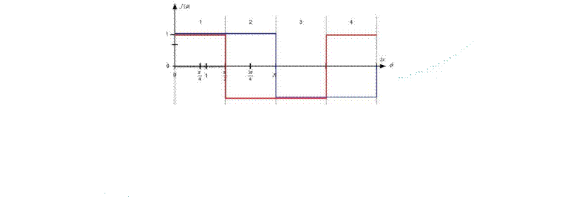 典型的步進電機有50個極(Poles),就是200個整步(Full Steps),也就是整步情況下每步1.8° 角度,電機旋轉一周需要360°。但是也有些步進電機的步距角更小比如整步需要800步的。起初,這些步進電機被用作整步或者半步模式下,矢量電流提供給電機線圈A(藍色) 和線圈B(紅色) 矩形曲線圖。描述了整個一個周期360°的曲線。在圖3和圖4中很明顯看到電機線圈在90°換相點處線圈電流要 么是最大電流(full power) 要么是沒有電流。