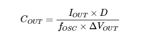 您可以使用以下公式根據(jù)預(yù)期輸出電流 (I OUT )、占空比 (D)、開關(guān)頻率 (f OSC ) 和所需輸出紋波 (ΔV OUT ) 計算滿意的輸出電容: