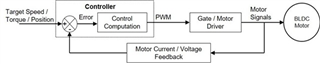 圖 1:無傳感器 BLDC 電機系統的典型控制環路