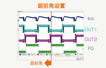 為了獲得最大扭矩,可相對于霍爾信號調整驅動器輸出信號的相位,以保證磁鐵(轉子)磁場的相位和線圈的相位成90度。超前角側的超前角最大可設為22.5度。