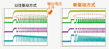 可抑制正向空轉上電時、反向空轉上電時、堵轉檢出/恢復時、扭矩輸入急劇變化時等情況下發生轉速變動時的輸出電壓跳變現象。