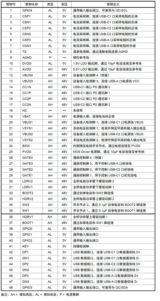 M12229H M12229H是一款面向2串電芯 35W移動電源應用的專用 SOC,集成了同步升降壓電壓變換器、電池充放 電管理模塊、顯示模塊、電量計算模塊,提供35W 輸入/輸出功率,支持PD3.0、QC3.0、AFC、FCP、SCP、 BC1.2 DCP 等主流快充協議,并提供輸入/輸出的過壓/欠壓、電池過壓、過充/過放、NTC 過溫、放電過流、輸出短路保護等完備的保護功能。配合極簡的外圍電路,即可組成35W多口移動電源。 QFN-40 5V-10V 2節鋰電池的移動電源35W雙向快充IC,支持PD3.0、QC3.0等主流快充協議