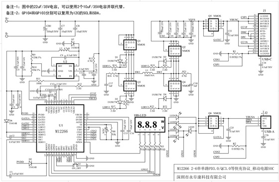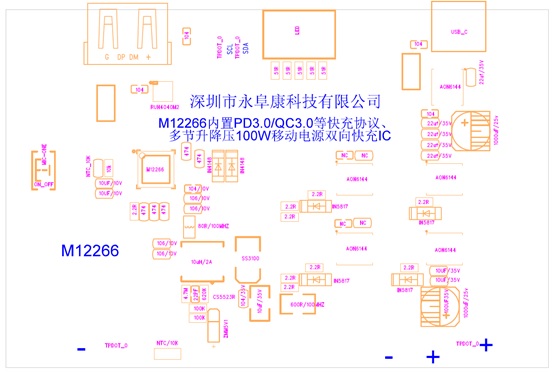 由于常見的便攜式電子設備都采用鋰電池供電,而不同設備的電采用的鋰電池串數不同。多節鋰電池充放電管理一直是一個棘手的問題。Type-C要統一充電接口,為不同鋰電池串數的電子設備進行充電,對充電芯片的要求是內置快充協議的同時,還需要實現對不同設備鋰電池組的充放電管理。為此,深圳市永阜康科技有限公司現在大力推廣一顆內置PD3.0/QC3.0等主流快充協議、3-6多節鋰電池移動電源雙向100W快充IC-M12266,配合極簡的外圍電路,即可實現常見便攜電子設備的Type-C快充需求。