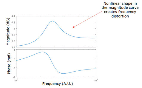 伯德圖中幅值曲線的形狀會導致寬帶信號中出現頻率失真