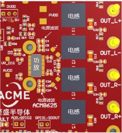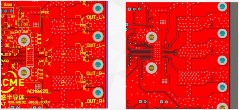 1)PCB板布局過于緊湊,功率密度太大,狹小的空間內布局2顆ACM8625P功放.