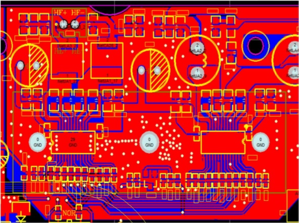 1) 芯片焊盤下面的鋪地盡量完整,而且鋪地面積盡量延伸至較寬范圍.