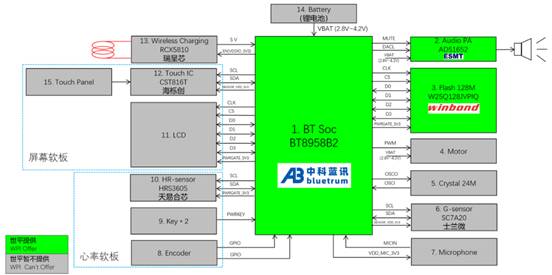 圖示3-大聯大世平基于中科藍訊產品的智能手表方案的方塊圖