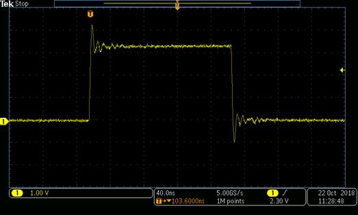 這 里,開關期間在 3.3V 線路上產生約 1V 的噪聲,該噪聲在終落入背景線路噪聲之前繼續在信號線路中明顯諧振。