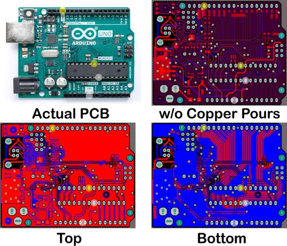 讓我們評估一個現實世界中的電路板示例。在下圖中,您可以看到 Arduino Uno 的 PCB 布局。