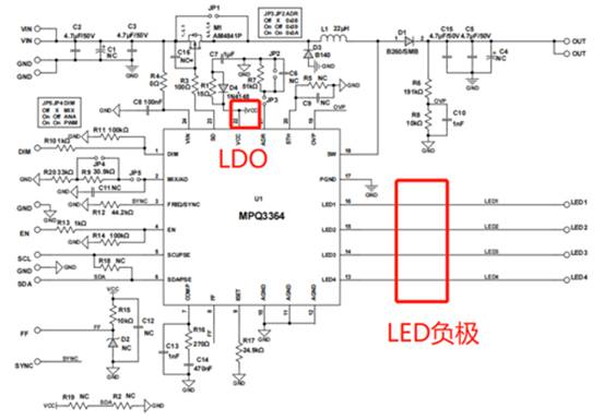現在我們可以鎖定問題點就是背光模塊,雖然不知道芯片內部的運作模式,但我們可以通過外圍濾波,抑制噪聲輻射。下面是升壓芯片的推薦電路圖: