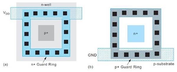 在某些應用中,如圖 3 所示的保護環適合包圍晶體管并在晶體管和電源軌之間提供低電阻路徑。