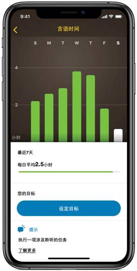 不但如此,如同一個雙向通道,在雙向藍牙技術的加持下,一方面,使用者不僅能清晰地聽到從電子設備傳到N7聲音處理器的聲音,另一方面,其聆聽表現也可以反饋到電子設備的Nucleus™ Smart App上。這樣一來,使用者本人或其家人能夠及時掌握佩戴者的聆聽情況,包括環境模式、音量、聽聲時長等,進而設定目標,更好地進行聽能管理,提升聆聽表現。例如,對于還不太會表達的寶寶可能因感受到噪音而哭鬧,家長拿起手機就可以查看聲音處理器的使用情況并為寶寶做出調整,提升其聆聽舒適度。