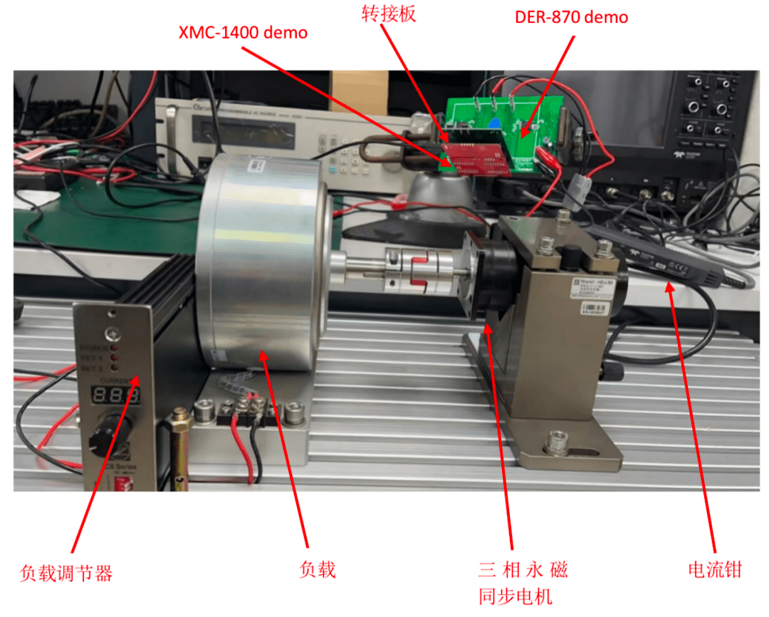 明確套件功能后,我們的測評步驟也基本確定:首先使用XMC1400(單片機開發板)、DER-870(BridgeSwitch™器件評估板)構建電機控制硬件。然后對PI Demo程序(BridgeSwitch Three-Phase Sensorless FOC Code Library using Integrated Phase Current (IPH))進行硬件適配。再使用上位機軟件Motor-Expert 2.0進行電機控制環的參數調優。最后,使用上位機軟件對電機狀態、相關數據波形進行顯示展示。