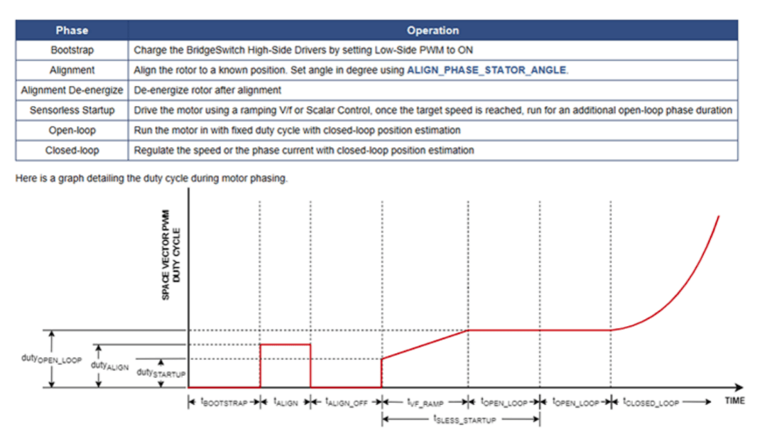 Sensorless Startup階段:此階段通過開環拖動,使電機轉速逐漸提高至設定的轉速值。