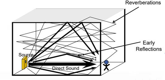 聲波在室內傳播時,會被墻壁、天花板、地板等障礙物反射,每經過反射一次都會被障礙物吸收一些。當聲源停止發聲后,聲波在室內要經過多次反射和吸收,最后才消失。因此我們可以感覺到,當聲源停止發聲后還有若干個聲波混合持續一段時間,即室內聲源停止發聲后仍然存在的聲延續現象,這種現象叫做混響,這段時間叫做混響時間。