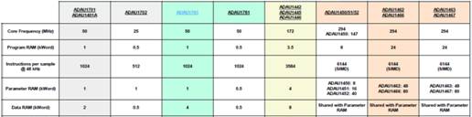 下圖(圖11)為ADI Sharc DSP產品選型對比表: