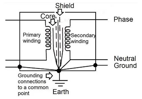 縮短 EGC 并減少上述影響的一種方法是在電子設備及其配電板附近安裝屏蔽隔離變壓器。屏蔽隔離變壓器的初級和次級繞組之間具有良好的絕緣性,將中性點接地的主要服務設備排除在外,并在次級繞組處恢復接地。