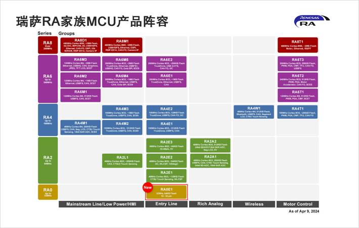 瑞薩RA家族MCU產(chǎn)品陣容