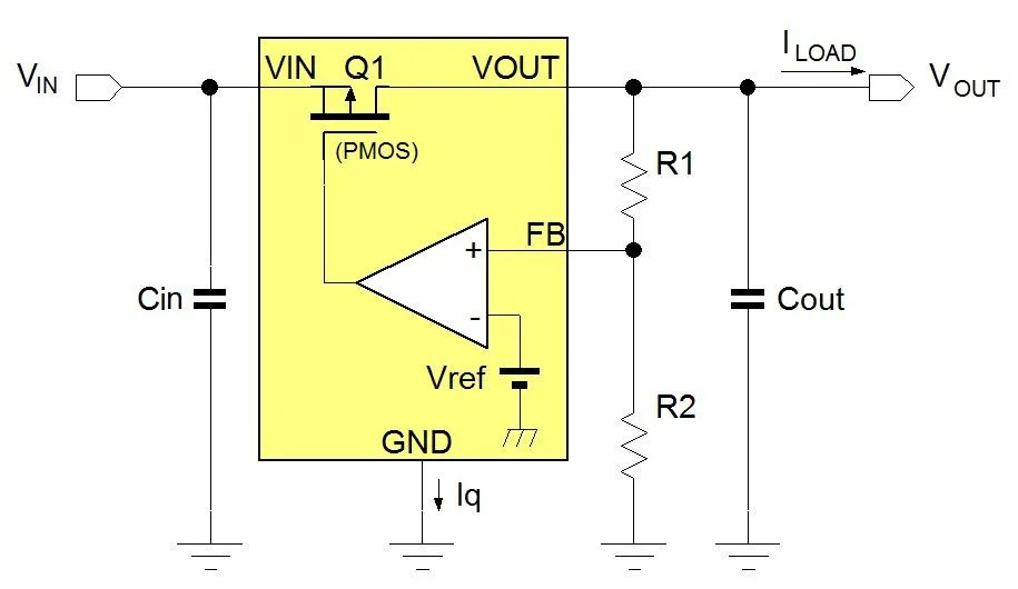 圖 2. 低壓差線性穩壓器 (LDO) 基本電路示意圖