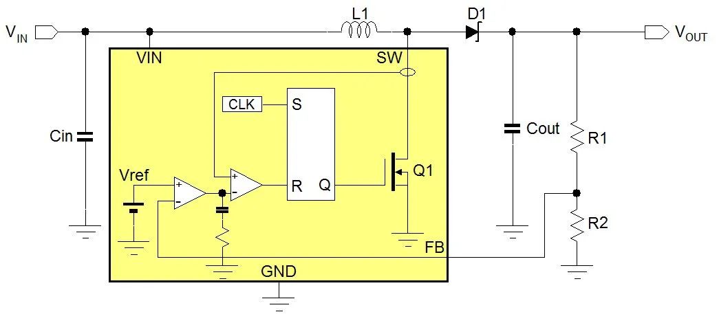 由于兩個 MOSFET 是交替開關 (ON 或 OFF),所以功率消耗非常小;藉由控制占空比,可以產生較大 VIN / VOUT 比的輸出。內部 MOSFET 的導通電阻 RDS(ON) 決定了降壓轉換器的電流處理能力,而 MOSFET 的額定電壓決定最大輸入電壓。開關切換頻率與外部 LC 濾波器元件則共同決定輸出端的紋波電壓大小;較高開關切換頻率之降壓轉換器所用之濾波元件可較小,但開關切換造成的功耗則會增加。具脈沖跳躍模式 (PSM) 的降壓轉換器會在輕載時降低其開關切換頻率,從而提高輕載時的效率,此特性對需低功耗待機模式之應用是非常重要的。