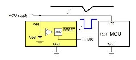 供應器的監控 IC 會監控電源過壓或欠壓的情形。圖 8 顯示一個典型的電源監控器偵測電源欠壓的情形。