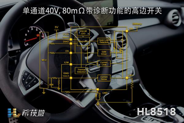 希荻微積極響應市場需求,深耕汽車電源市場,持續研發并推出DC/DC、LDO、高邊開關等多個品類的汽車級芯片。最近,希荻微推出一款80mΩ Rds(on)帶電流檢測模擬反饋的汽車級單通道高邊開關芯片——HL8518,憑借極低功耗、高控制精度和高可靠性的優異性能,獲得眾多汽車品牌廠商和一級供應商的青睞。該芯片在惡劣的汽車環境下依然能保持性能穩定,有效提升汽車電源控制系統的安全性和可靠性。