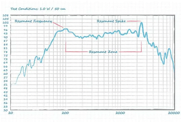 機械共振的影響因素包括重量,以及將不同質量連接在一起的剛度。對于標準揚聲器,這個質量就是振膜(或音盆),而剛度則取決于連接振膜和框架的懸架的柔性。由于揚聲器的制造方式多種多樣,每種揚聲器類型都可能產生不同的共振頻率。