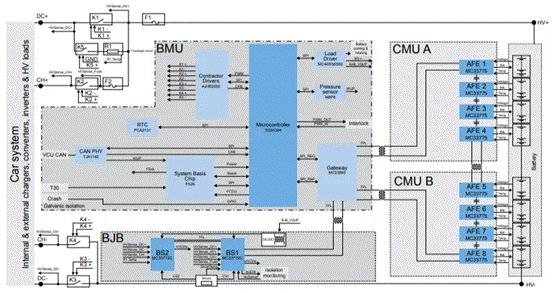 NXP的可擴展高壓電池管理系統(tǒng)(HVBMS)參考設(shè)計,包含了BMU、CMU和BJB全部三個模塊。