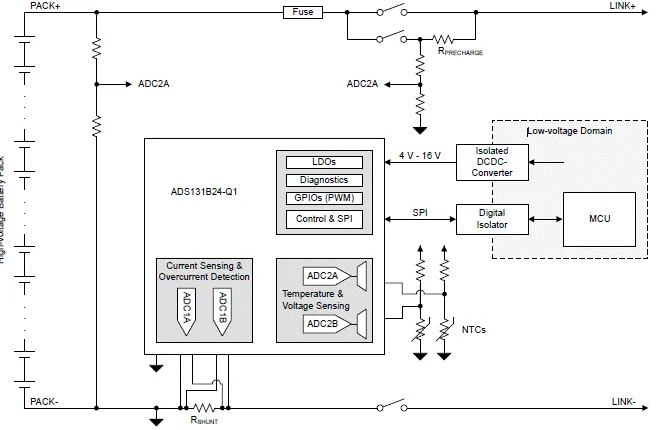 圖6:基于ADS131B24-Q1的電動汽車電池組監(jiān)測系統(tǒng)方框圖(圖源:TI)