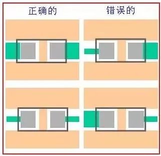 第一就是與切割方向平行(使器件的機械應力均勻,比如如果按照上圖左邊的方式來擺放,在拼板要拆分時貼片兩個焊盤受力方向不同可能導致元件與焊盤脫落)