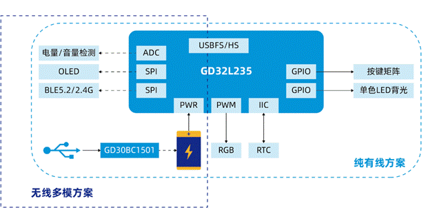 同時,在設計高性能機械鍵盤時,對MCU的PWM通道數量、I/O資源以及Flash存儲能力提出了嚴格要求。GD32L235系列微控制器恰如其分地滿足了這些高階需求,展現了其在機械鍵盤領域的適應性。
