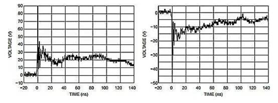 圖 1:ESD7008 對 IEC61000-4-2 +/-8kV 接觸 ESD 脈沖的鉗位響應(來源:ON Semi)