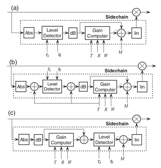 一般DRC包含分頻,擴位,峰值/均值檢測,啟動和釋放平滑增益控制等,常見動態范圍壓縮的框圖如下。