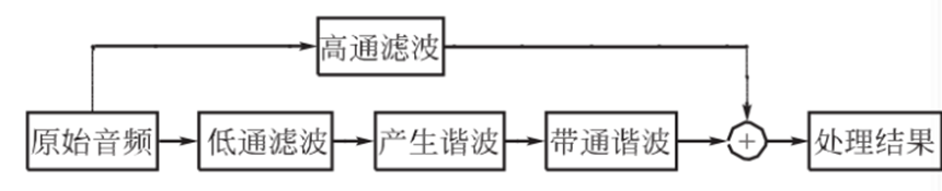 心理聲學實驗中,存在一種“虛擬音調”的實驗現象:人耳在基頻缺失的情況下利用諧波組合重建信號音調高低。主要流程如下圖,產生諧波主要方法為MaxxBass算法和VB Phase Vocoder。