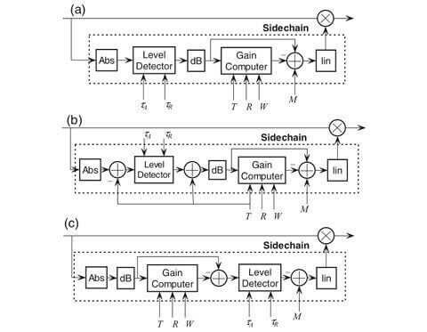 一般DRC包含分頻,擴(kuò)位,峰值/均值檢測,啟動和釋放平滑增益控制等,常見動態(tài)范圍壓縮的框圖如下。
