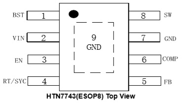 HTN7743具有外部環路補償功能,可靈活優化環路穩定性或環路響應。HTN7743提供逐周期電流限制、熱關斷保護、輸出過壓保護、輸出過載保護和輸入電壓欠壓保護。該設備采用ESOP8封裝。
