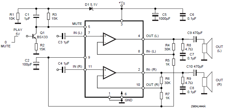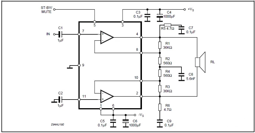 備注:圖中揚聲器端并聯的RC串聯網絡是為了防止震蕩