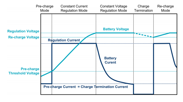 預充電(Precharge)發生在電池電壓比較低時,對于大多數鋰離子電池來說,這個電壓通常定義在2.9V~3V以下,此時的充電電流一般容許在C/10以下。