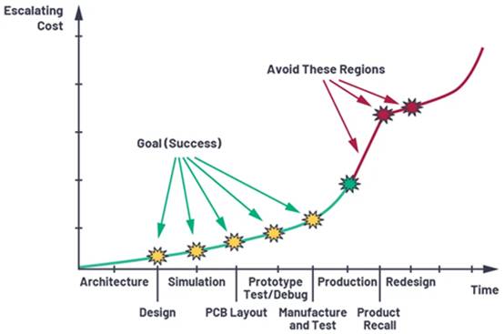 圖1. 生產(chǎn)的電路板出現(xiàn)問題時(shí),成本可能急速上漲。
