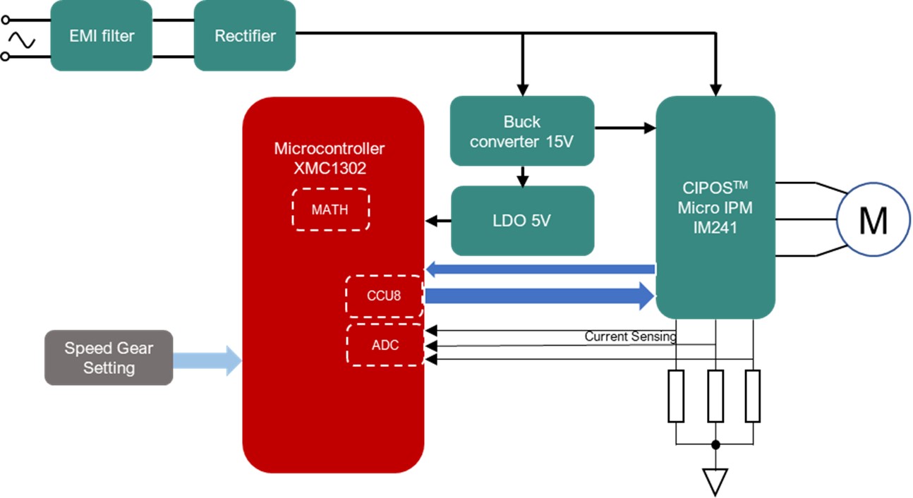 圖1 基于XMC1302的吊扇解決方案系統框圖