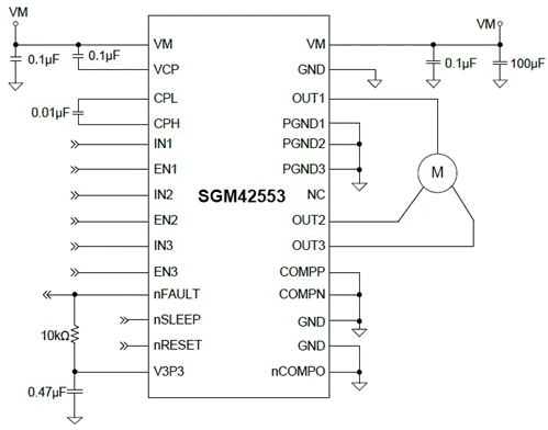 SGM42553 45V/3A峰值電流的三相半橋驅動芯片
