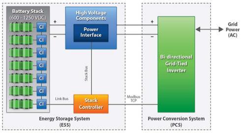 圖 2.Nuvation Engineering 電池管理系統(tǒng)是交流電網(wǎng)和電池電芯陣列之間的接口;它提供先進(jìn) 的電池充電/放電監(jiān)控以及 DC/AC 逆變器功能