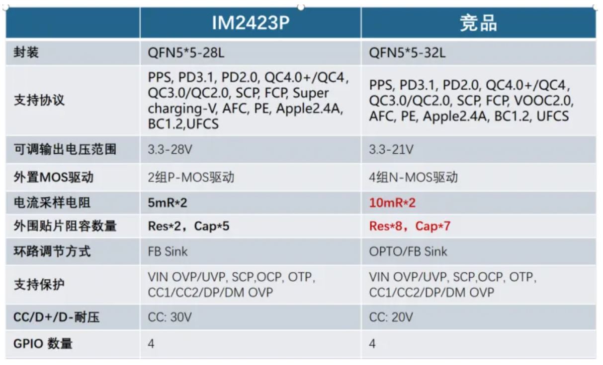 IM2423P與競品核心參數(shù)及BOM對(duì)比