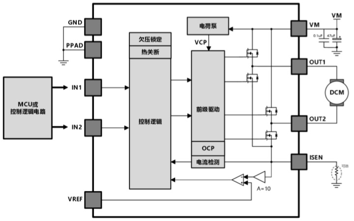 HTD8238是一款直流有刷電機(jī)驅(qū)動器,能夠以高達(dá)7A的峰值電流雙向控制電機(jī)。利用電流衰減模式,可通過對輸入信號進(jìn)行脈寬調(diào)制(PWM)來控制電機(jī)轉(zhuǎn)速,同時(shí)具備低功耗休眠模式。