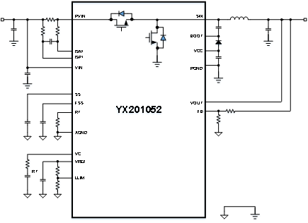YX201052(支持100V高電壓輸入、5A電流全集成同步降壓芯片)
