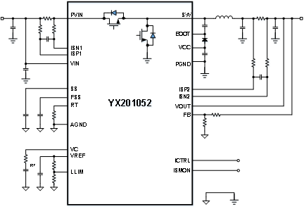 圖2 YX201052應用框圖 (帶輸出恒流調節和監測)