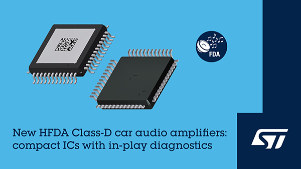新產品HFDA80D和HFDA90D是意法半導體高頻汽車音頻功放產品家族最新成員,與現有的模擬輸入車規音頻功放HFA80A互補。全系產品的開關頻率都是2MHz,可以節省 PCB電路板空間,降低物料成本(BOM)。這些芯片還采用了創新架構,可最大限度減少封裝引腳數和外部元器件的數量,采用 7mm x 7mm LQFP48 封裝,散熱盤置于芯片頂部,配備四路通道27W輸出。
