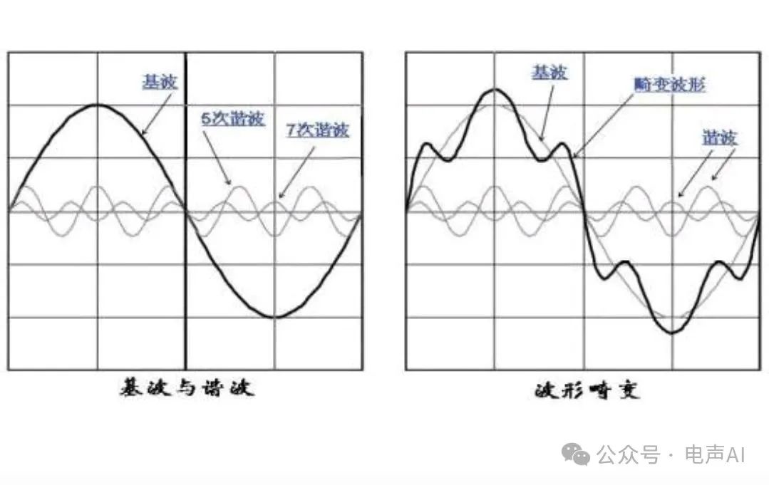 簡單來說,比如原始信號是標準的正弦波(只有基波),經過存在失真的設備后,波形會變得“變形”,這些變形的部分就是諧波的影響。