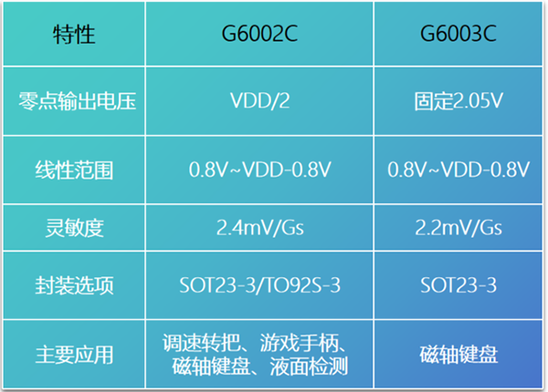 G6002C和G6003C是我們專為不同應用場景優化設計的線性霍爾傳感器,具有以下共同優勢: