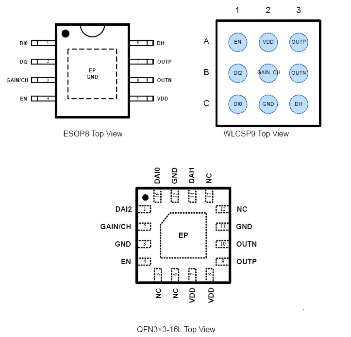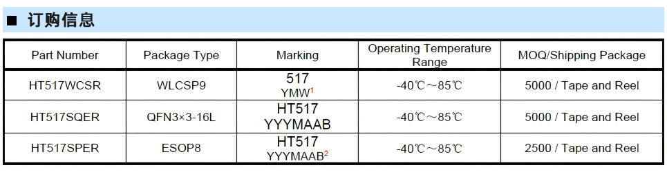 - WLCSP9, ESOP8, QFN3×3-16L封裝